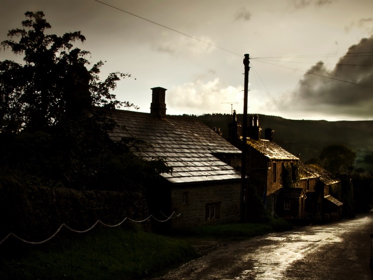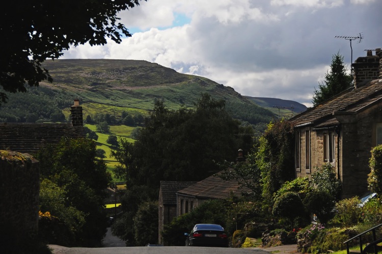 Looking down the village from the church - the car is parked outside Hill Top Cottage