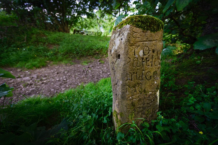 milestone at the top of Sandy Gate Lane
